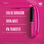 Labial mate líquido de larga duración con nueva fórmula 100% mate, 0% transfer y 24H de duración. Medidas aproximadas: Alto 11.38mm; Ancho: 14.35mm, Fondo: 14.35mm.